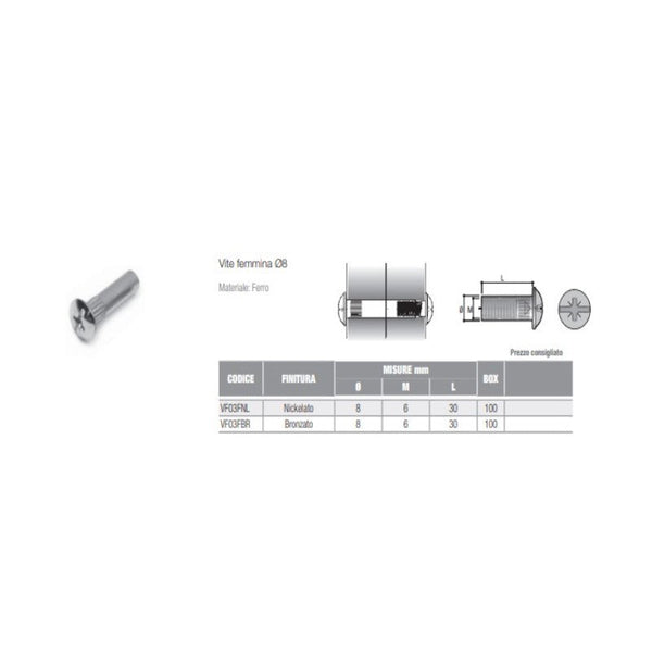 Viti Giunzione Femmina Vf03 X Mobili Fz 8X31 M6