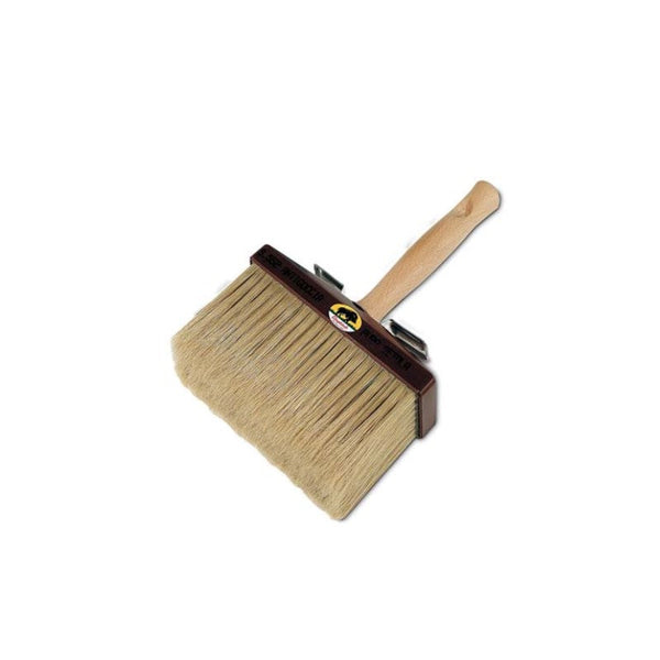 Assicella in plastica e manico anatomico in legno verniciato. Realizzato con una miscela di setola bionda e filamenti sintetici. Lavorazione a ciuffi ed incollatura con mastice epossidico. Consigliato per uso professionale e il fai da te piu’ evoluto. Idoneo con tutti i tipi di idropitture e quarzi.