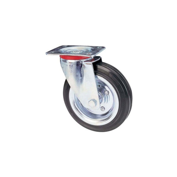 Ferramenta. RUOTA IND. ART.80 D.150 PIASTRA GIREVOLE Art. 80 in gomma. Con cuscinetto a rulli. Supporto leggero girevole. Diametro mm 150x40 Portata 135 kg