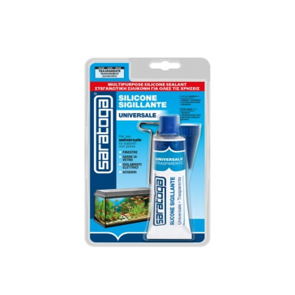 Saratoga Silicone Sigillante Trasparente Universale in blister viene utilizzato per la sigillatura di serramenti e vetri, assemblaggi e per sigillature in genere, finestre, oblò, acquari(fino a 100 litri), carrozzerie, serramenti, vasi, piastrelle, ecc.Impermeabile, mantiene la sua efficacia anche in acqua dolce e marina.